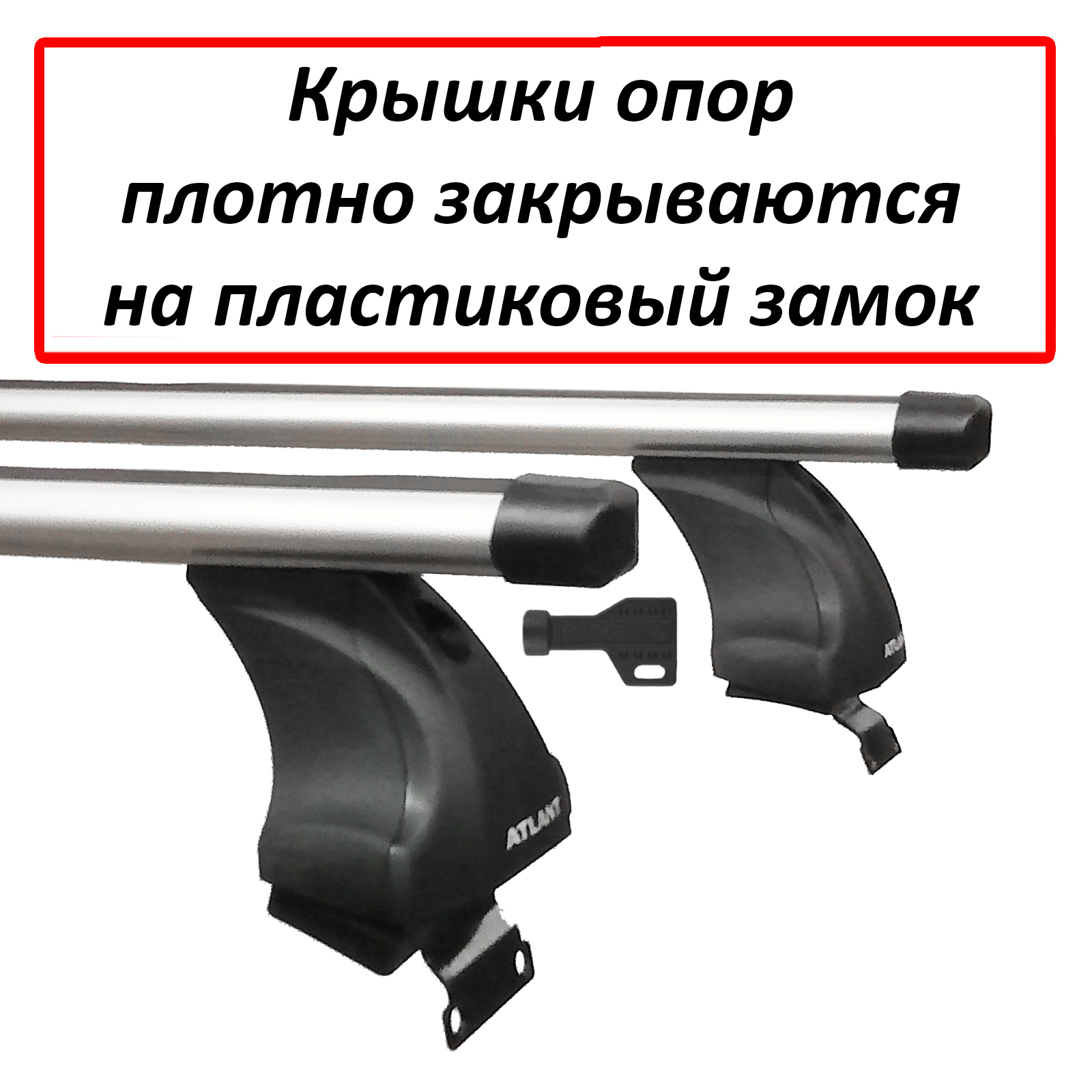 В основе конструкции 2 поперечные дуги аэродинамического профиля длиной 1100 мм. Они имеют Т-образный слот для вставки специальных насадок под лыжи и/или велосипеды. Дуги ставятся на опоры типа Е - прочные стойки оригинальной конструкции с повышенными аэродинамическими характеристиками. Каждая опора имеет крышку, запирающую корпус стойки на пластиковый замок. Опоры соприкасаются с крыше посредством резиновых подушек, точно повторяющих контур крыши. Фиксация всей конструкции на крыше производится с помощью прижимов, при этом используются штатные отверстия под проемом - для этого в комплекте имеется набор винтов.