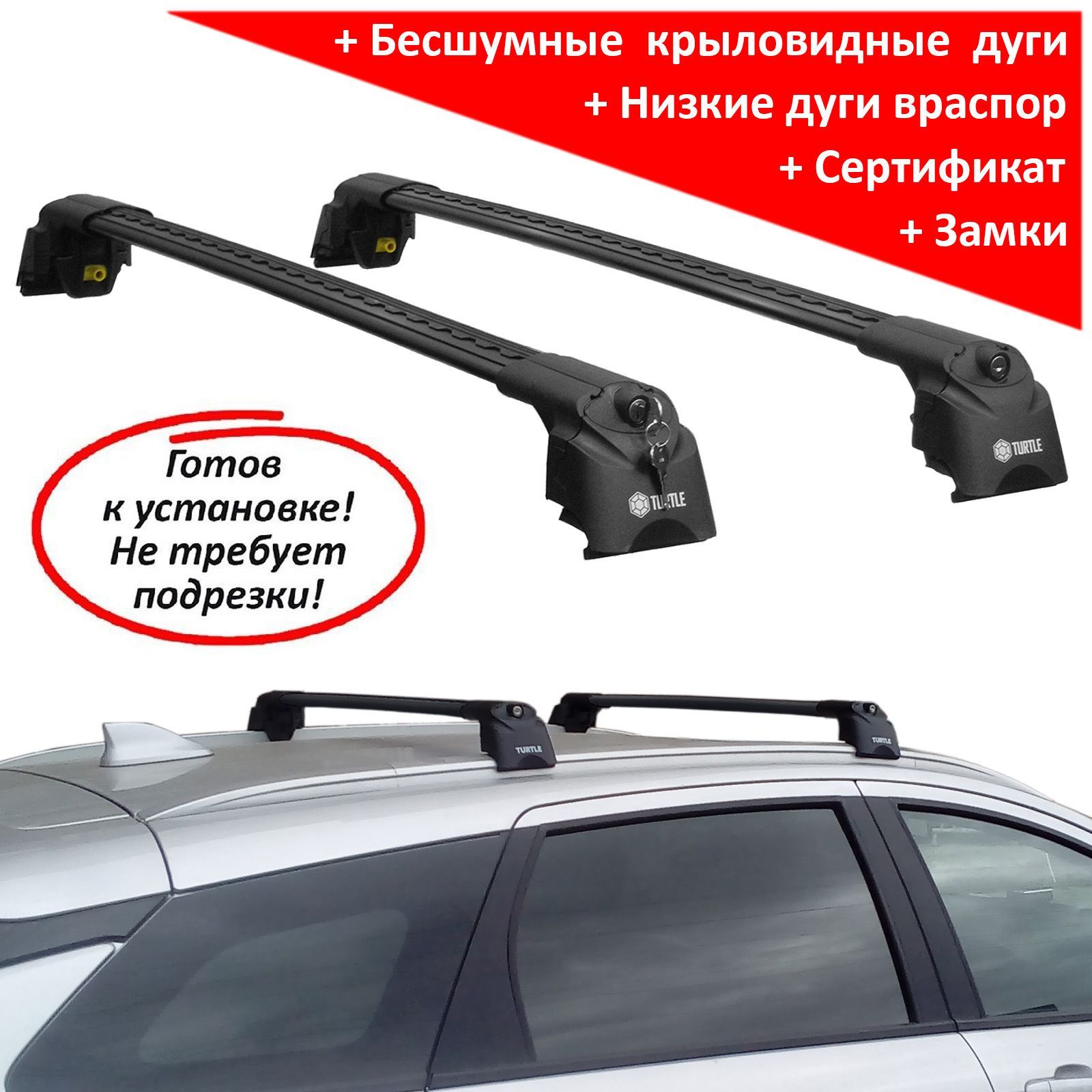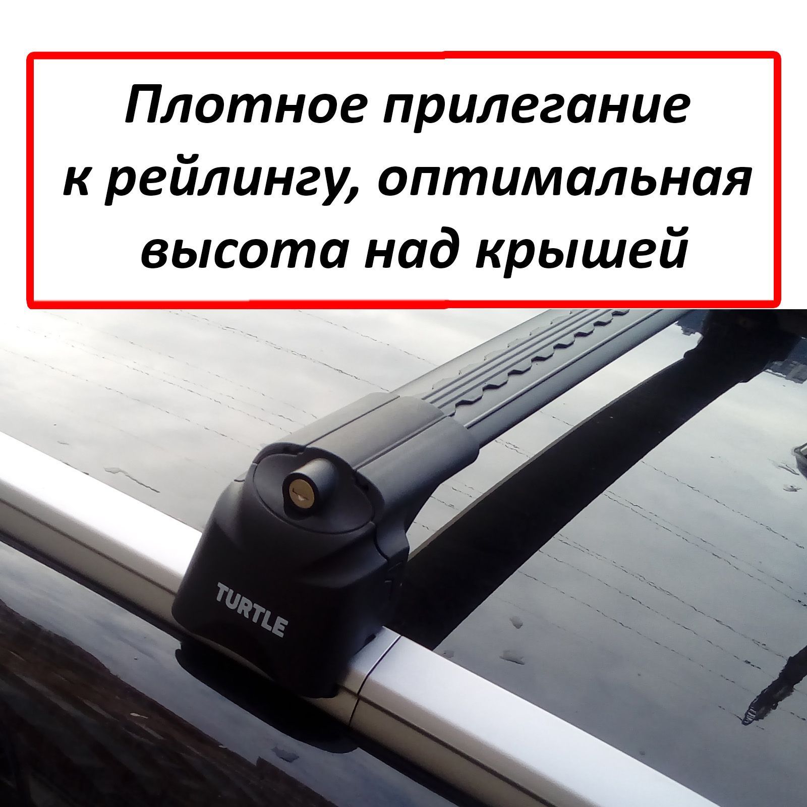 Багажник на интегрированные рейлинги Turtle Air 2 (Турция), без вылетов, с аэродинамическими дугами черного цвета. Грузоподъемность - до 75 кг.