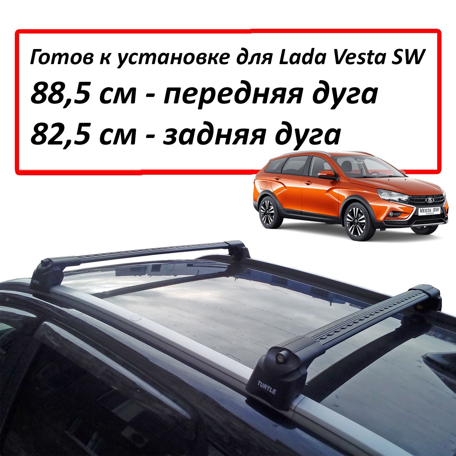 В отличие от стандартного багажник Turtle Air 2 в данной комплектации изначально идут дуги необходимой длины для установки на рейлинги Lada Vesta SW / Lada Vesta SW Cross, поэтому вам не нужно будет тратить время на замеры / подпиливание / сверление поперечин - багажник сразу готов к установке.