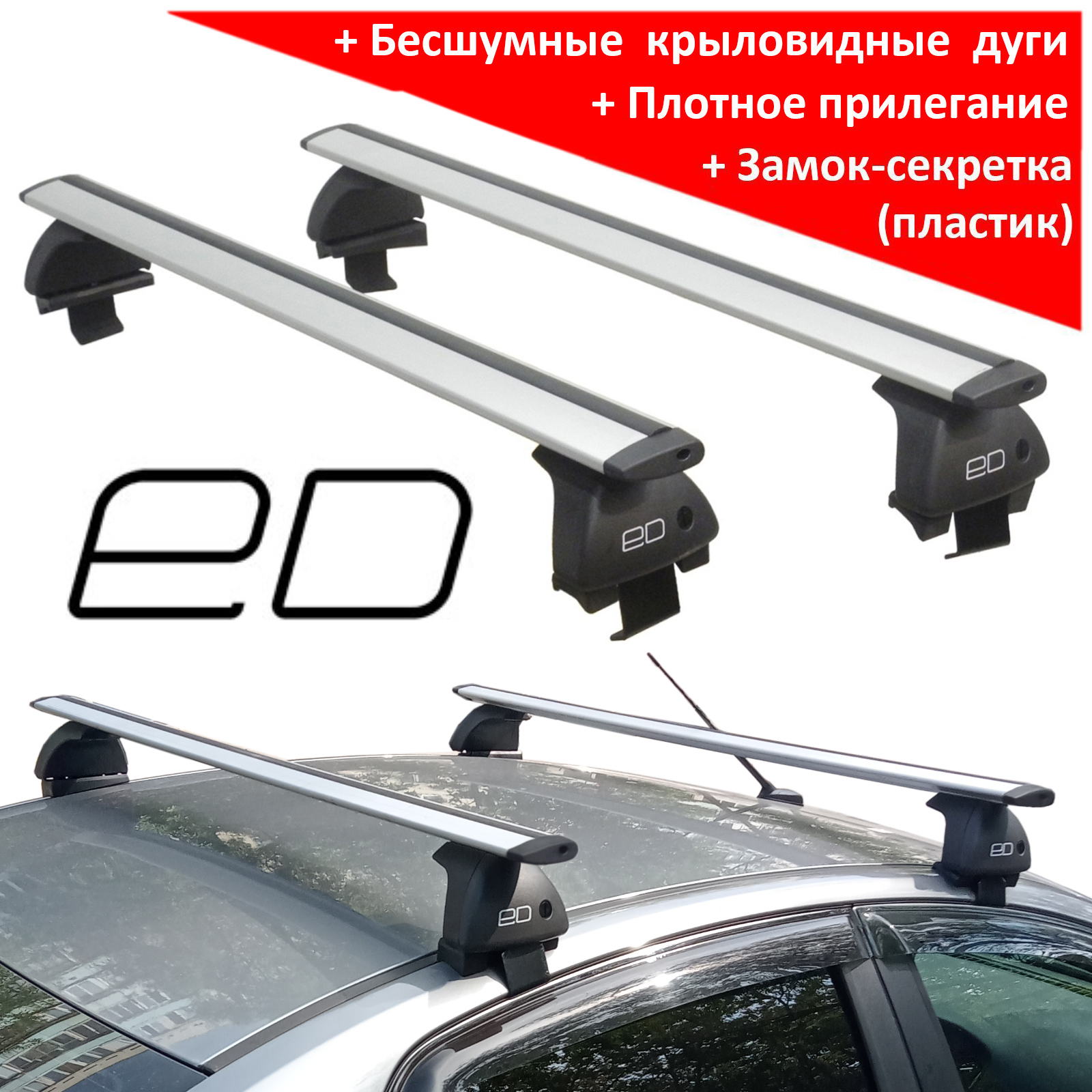 Багажная система ЕД - это простая, но надежная конструкция, состоящая из трех основных частей: дуг, опор и адаптеров. Профиль дуги - крыловидный (ширина 80 мм), материал - анодированный алюминий, цвет - серебристый, длина 1250 мм. Поверх дуги проходит Т-образный профиль, предназначение которого - легкая и быстрая установка дополнительного оборудования - велокреплений, лыжный насадок. В свободном состоянии Т-профиль закрывается черным резиновым уплотнителем. На концах дуг располагается пара заглушек. Дуги опираются на 4 стойки, производимые из прочного пластика. Крышки плотно закрываются на пластиковый замок (Дополнительная опция - металлические замки). Фиксация на крыше производится с помощью системы адаптеров за дверной проём.