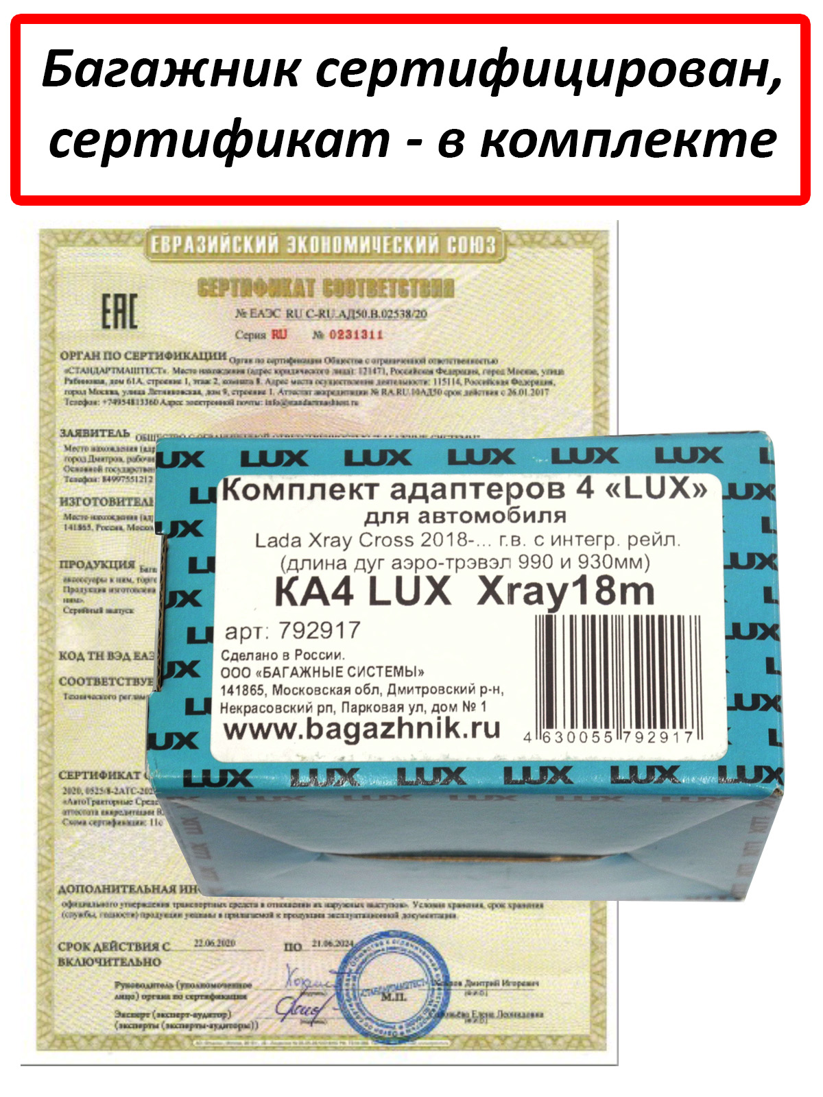 Установка багажника производится на интегрированные рейлинги, согласно прилагаемой инструкции. Купить багажник на Lada XRay Cross марки Lux вы можете в нашем интернет-магазине "Багажники". Доставка по Уфе и России.