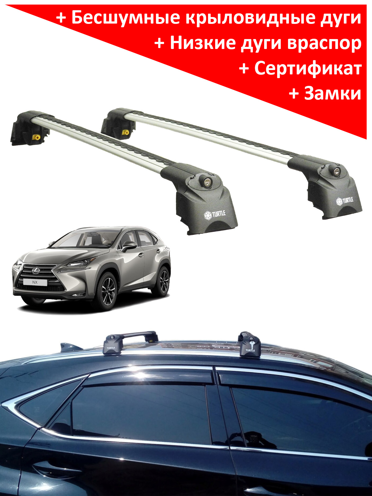 Багажник на крышу Lexus NX, Turtle Air 2, аэродинамические дуги на интегрированные рейлинги (серебристый цвет)