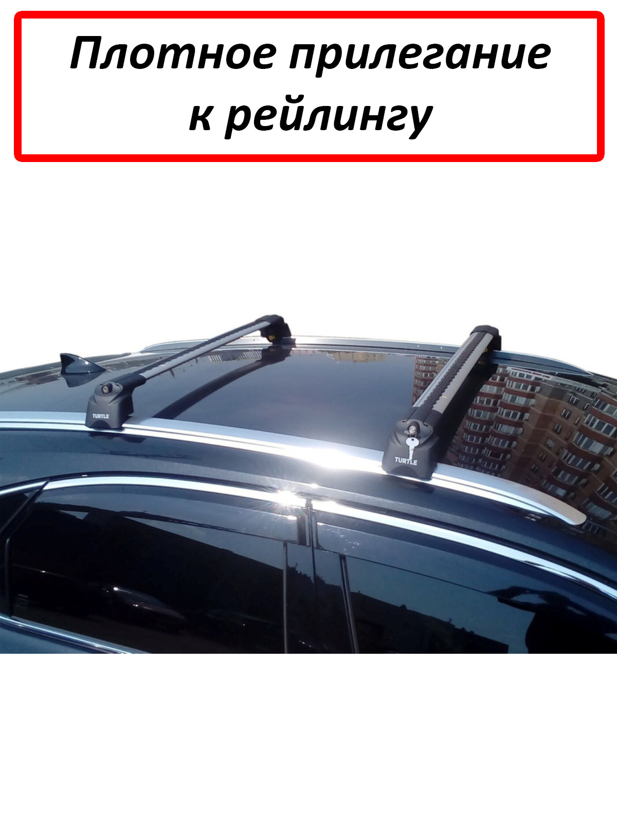 Багажник на интегрированные рейлинги Turtle Air 2 (Турция), без вылетов, с аэродинамическими дугами серебристого цвета. Грузоподъемность - до 75 кг.
