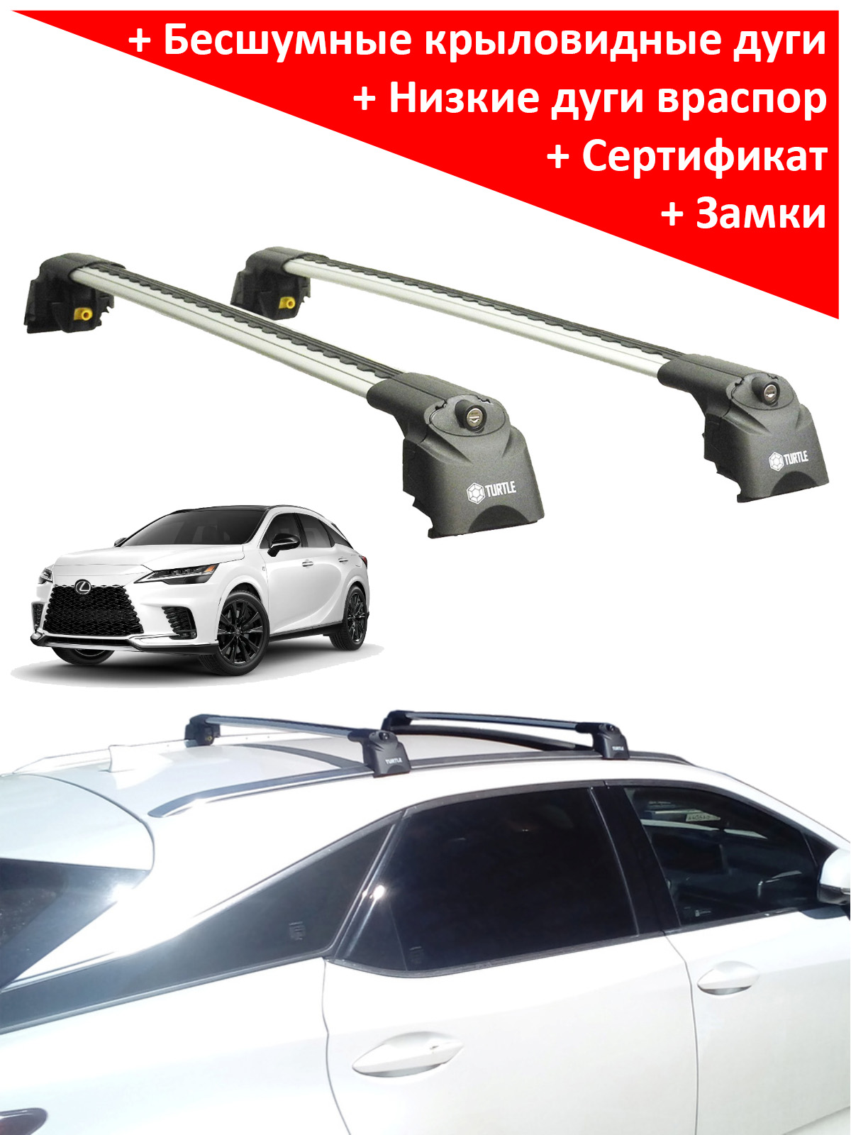 Багажник на крышу Lexus RX 300 (IV, 2015-...), Turtle Air 2, аэродинамические дуги на интегрированные рейлинги (серебристый цвет)