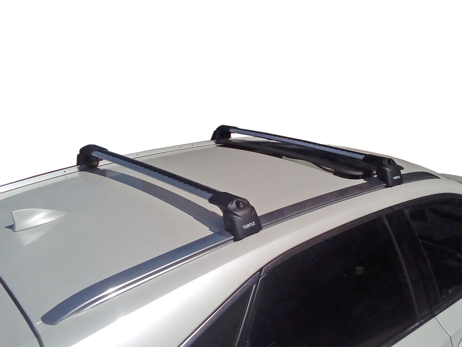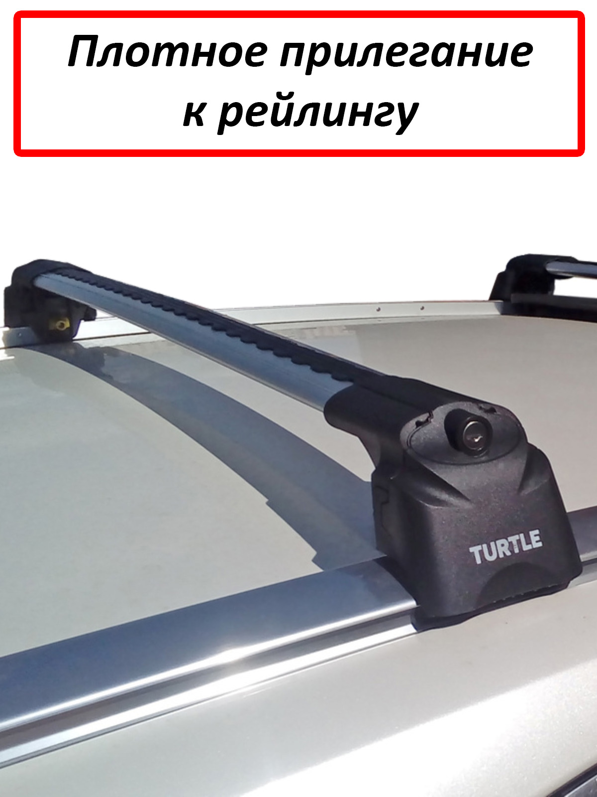 Багажник на интегрированные рейлинги Turtle Air 2 (Турция), без вылетов, с аэродинамическими дугами серебристого цвета. Грузоподъемность - до 75 кг.