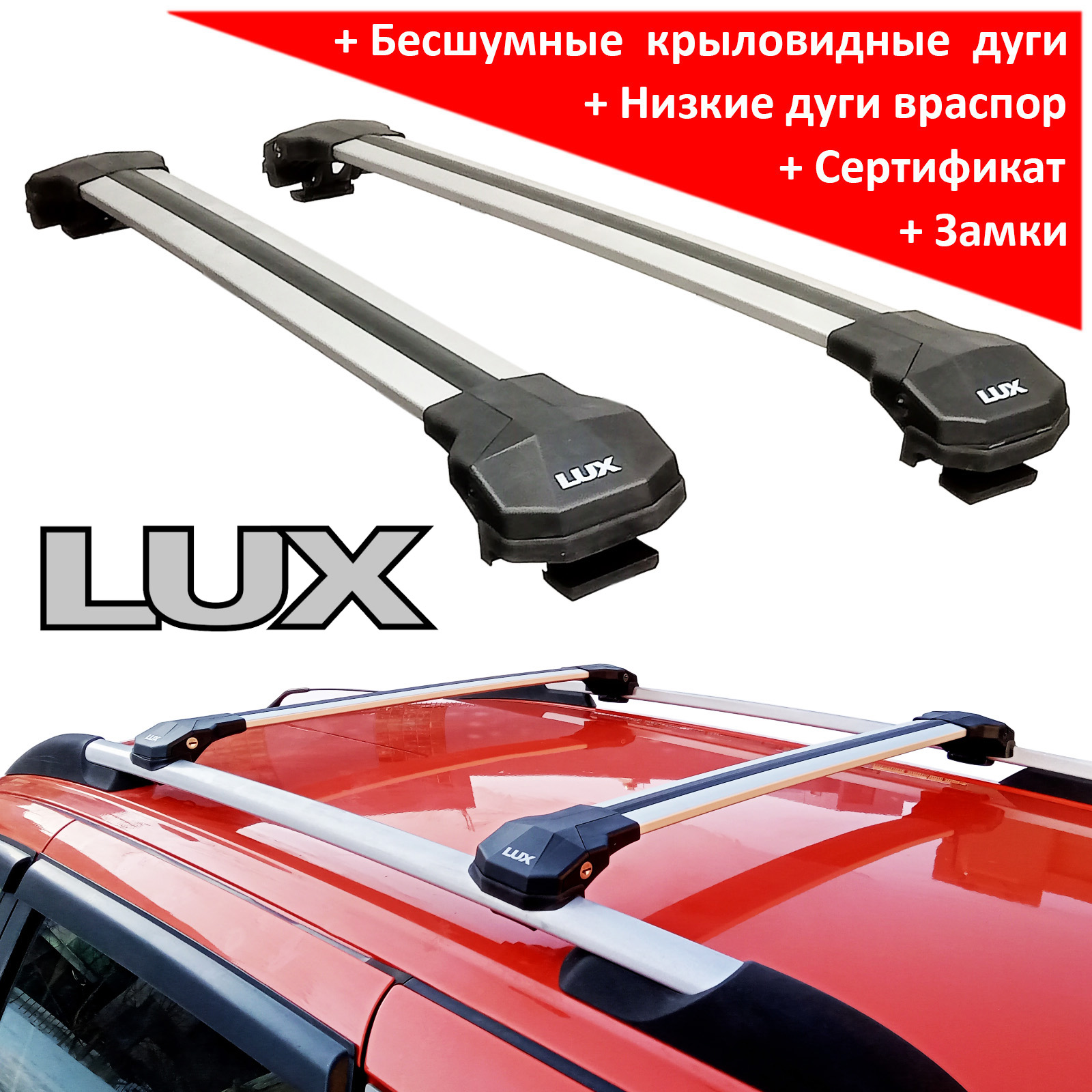 Багажник на крышу Lux Condor, крыловидные дуги на рейлинги (серебристый цвет)