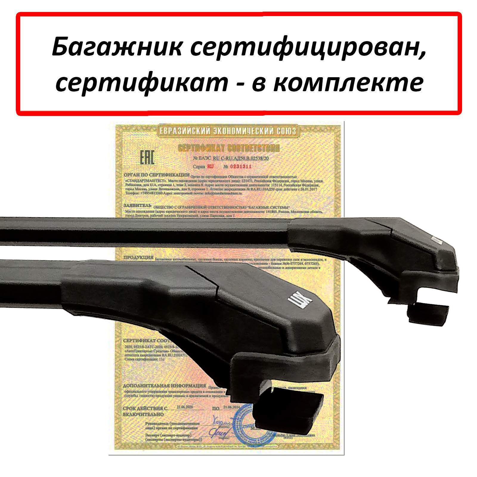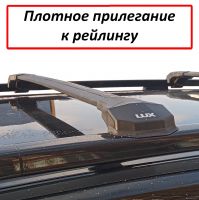 Багажник на рейлинги Lux Condor (Россия), без вылетов, с крыловидными дугами черного цвета. Грузоподъемность - до 75 кг.