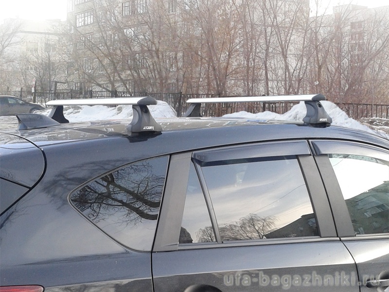 Автобагажник на крышу Mazda CX-5, Атлант (Россия), с крыловидными аэродугами и опорами типа E. Грузоподъемность до 75 кг (до 120 кг распределенной нагрузки)