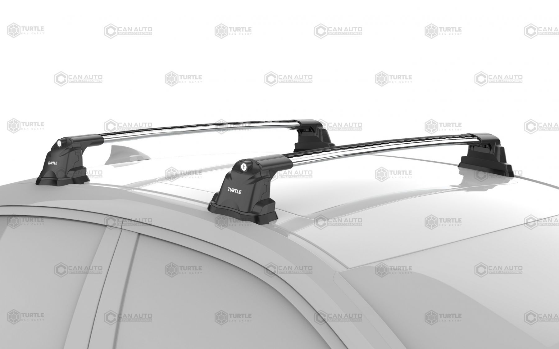 Багажник на Mazda CX-9 2006-16, Turtle Air 3 Premium (Турция), без вылетов, с аэродинамическими дугами серебристого цвета. Установка в штатные места. Грузоподъемность - до 75 кг.