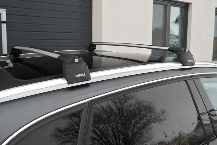 Багажник на интегрированные рейлинги Turtle Air 2 (Турция), без вылетов, с аэродинамическими дугами серебристого цвета. Грузоподъемность - до 75 кг.