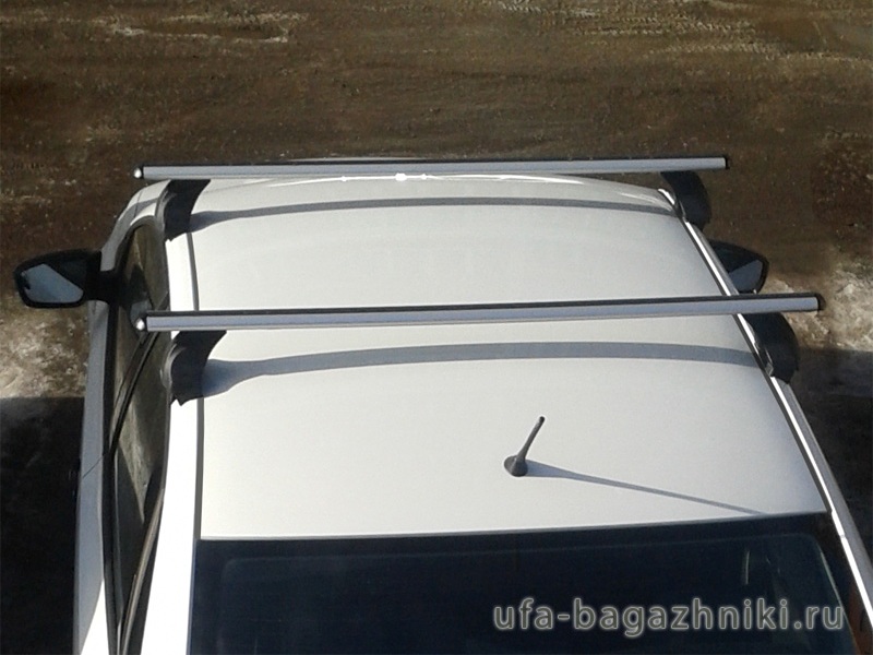 Автобагажник Атлант для Mitsubishi Lancer 10 sedan, с аэродинамическими дугами и опорами типа Е. Грузоподъемность до 75 кг (до 120 кг распределенной нагрузки)