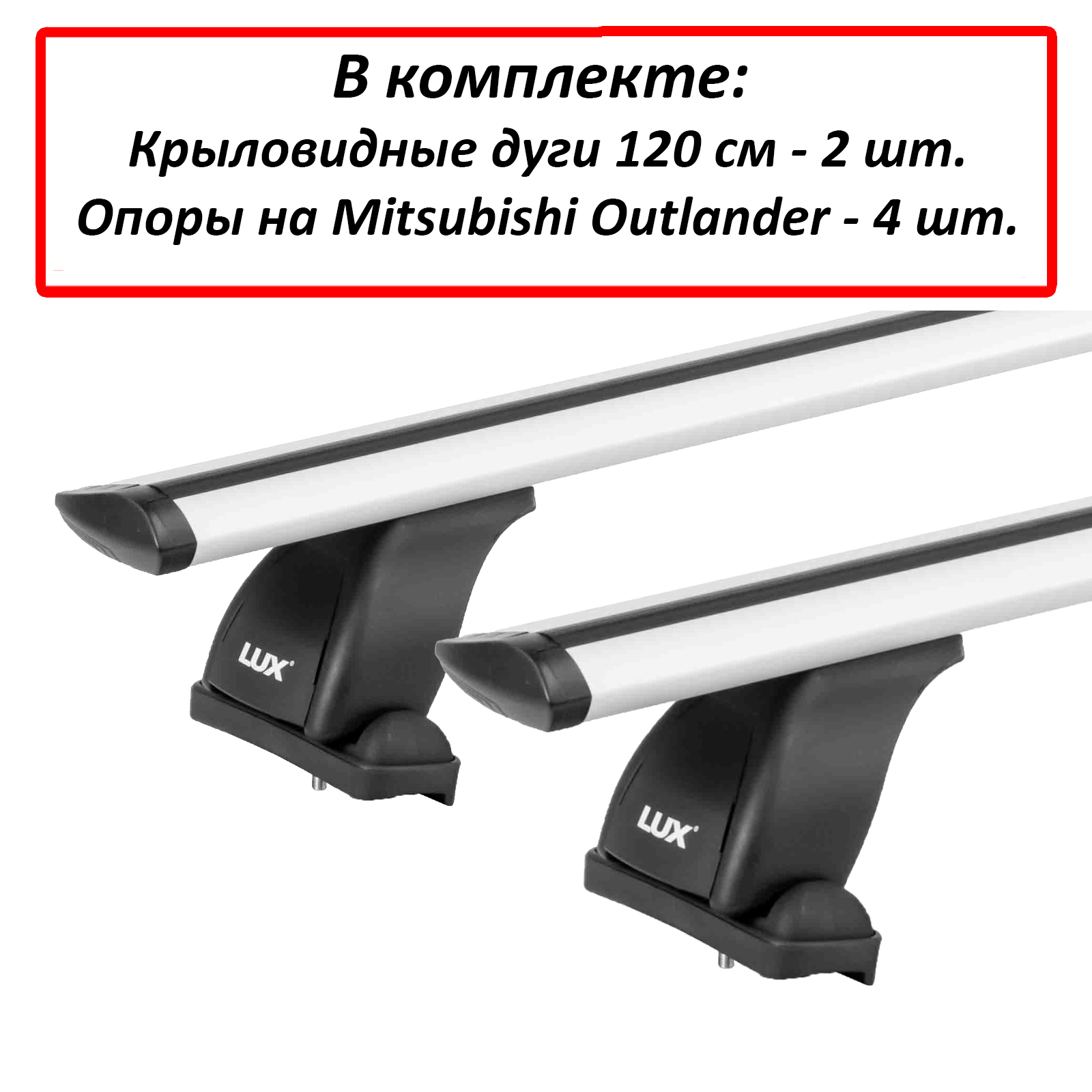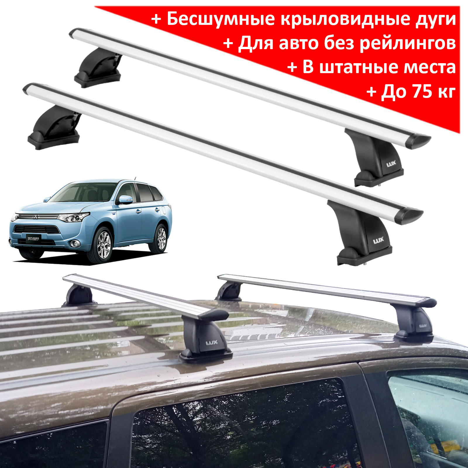 Автобагажник на крышу автомобиля Mitsubishi Outlander 3 (без рейлингов) - Lux (Россия), крыловидные дуги (аэро-трэвэл 82 мм). Грузоподъемность до 75 кг. Установка в штатные места