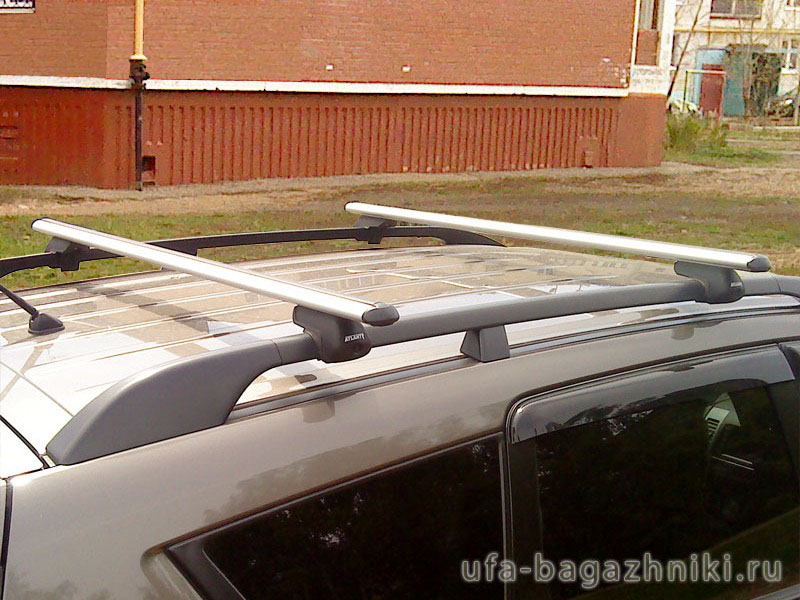 Автобагажник на крышу Mitsubishi Outlander XL 2007-2013, Атлант (Россия), с аэродинамическими дугами на рейлинги. Грузоподъемность до 75 кг (до 120 кг распределенной нагрузки).