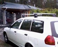 Автобагажник на крышу Nissan AD, производство - Атлант (Россия), с прямоугольными дугами. Грузоподъемность до 75 кг (до 100 кг распределенной нагрузки)