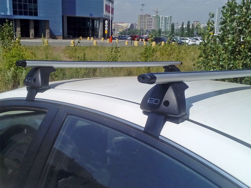 Автобагажник на крышу автомобиля Nissan Almera 2012-... - Евродеталь (Россия), аэродинамические дуги. Грузоподъемность до 50 кг