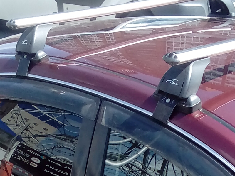Багажная система Lux - это простая, но надежная конструкция, состоящая из трех основных частей: дуг, опор и адаптеров. Профиль дуги - аэродинамический, материал - анодированный алюминий, цвет - серебристый, длина 1200 мм, ширина - 53 мм. Поверх дуги проходит Т-образный профиль, предназначение которого - легкая и быстрая установка дополнительного оборудования - велокреплений, лыжный насадок. В свободном состоянии Т-профиль закрывается черным резиновым уплотнителем. На концах дуг располагается пара заглушек. Дуги опираются на 4 стойки, производимые из прочного пластика. Фиксация на крыше производится с помощью системы адаптеров за дверной проём.