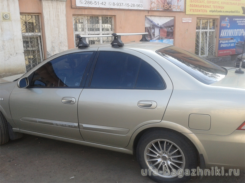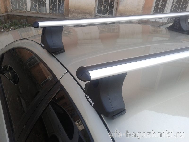 Автобагажник на крышу Nissan Almera Classic 2006-13, Атлант (Россия), с аэродинамическими дугами. Грузоподъемность до 75 кг (до 120 кг распределенной нагрузки)