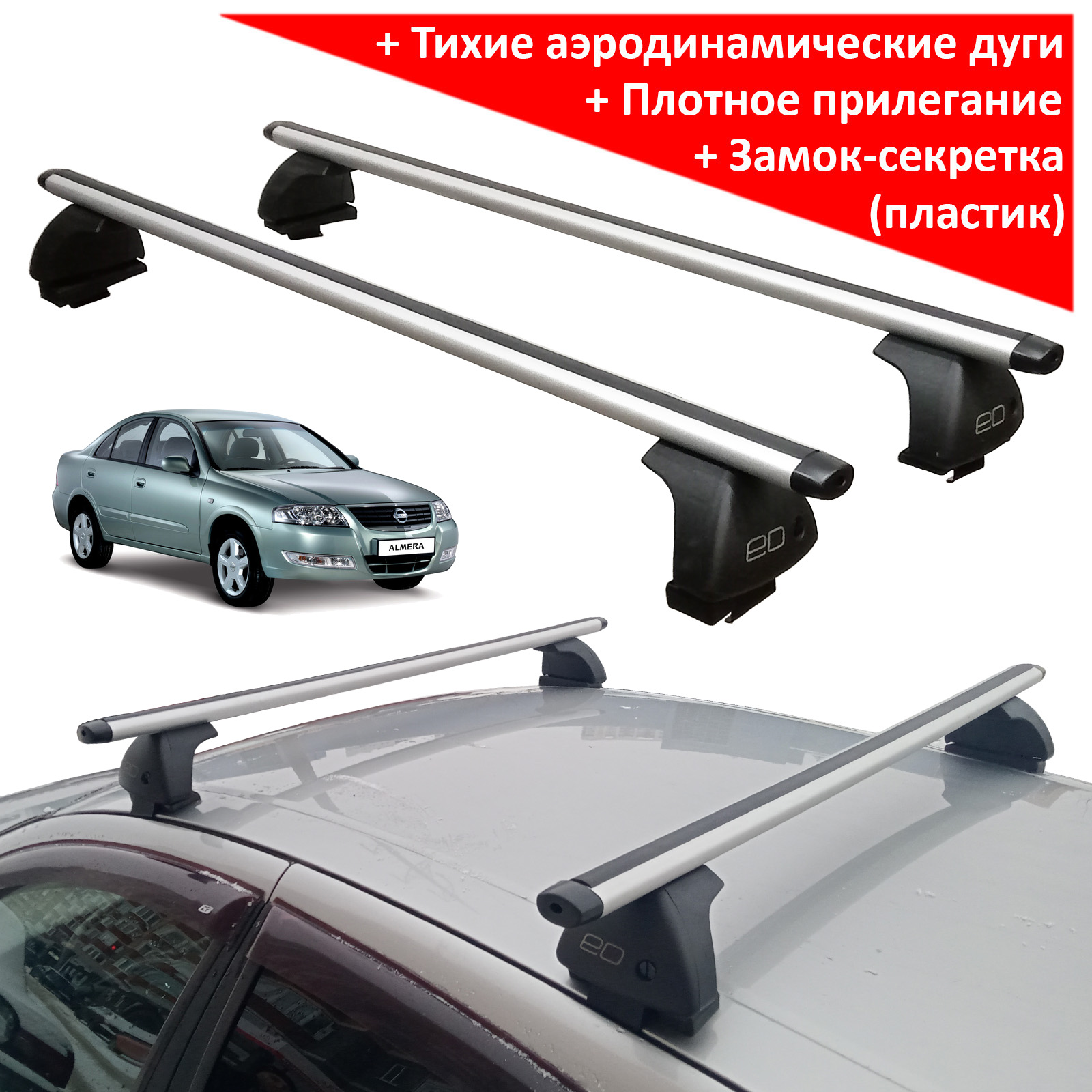 Автобагажник на крышу автомобиля Nissan Almera Classic - ЕД (Россия), аэродинамические дуги. Грузоподъемность до 75 кг