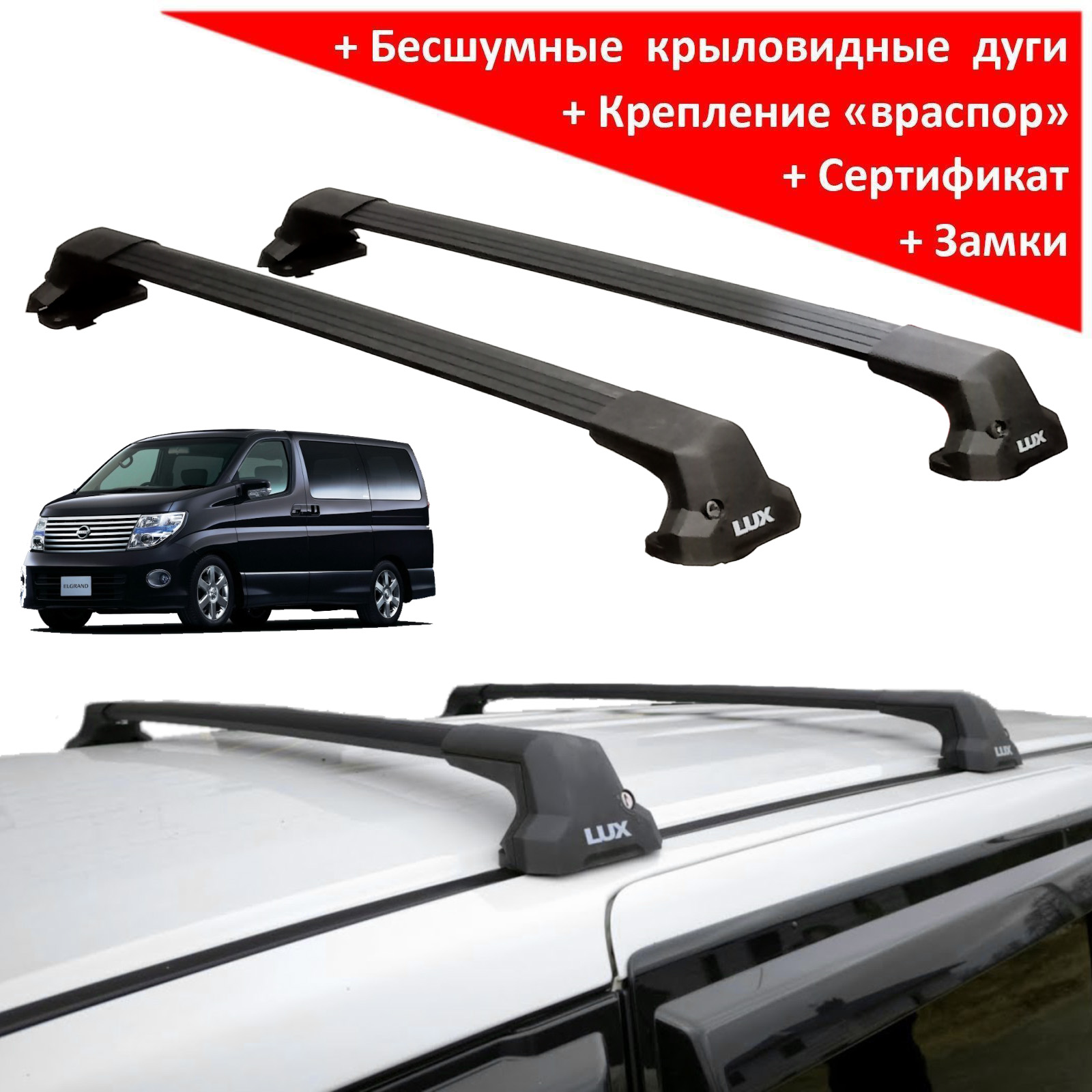 Багажник на крышу Nissan Elgrand (E51, 2002-2010), Lux City, с замком, черные крыловидные дуги