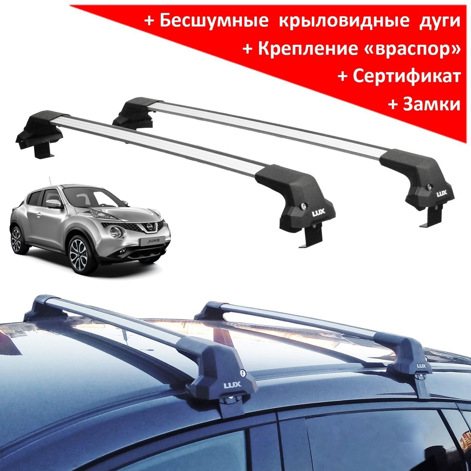 Багажник на крышу Nissan Juke, Lux City (без выступов), с замком, серебристые крыловидные дуги
