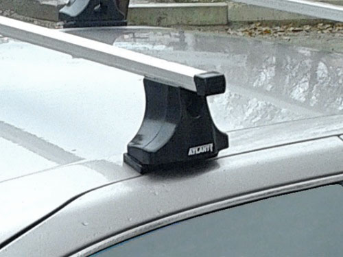 Прочные алюминиевые дуги выполнены в виде прямоугольных поперечин 20х30 мм, толщиной стенки 2,5 мм и длиной 1260 мм. Каждая дуга снабжена двумя пластиковыми заглушками. Материал, из которого производятся опоры, представляет собой композит черного цвета, при этом в конструкции используется замковый механизм, закрывающий крышку опор. Фиксация на крыше происходит посредством зажима специальных адаптеров за дверной проем.