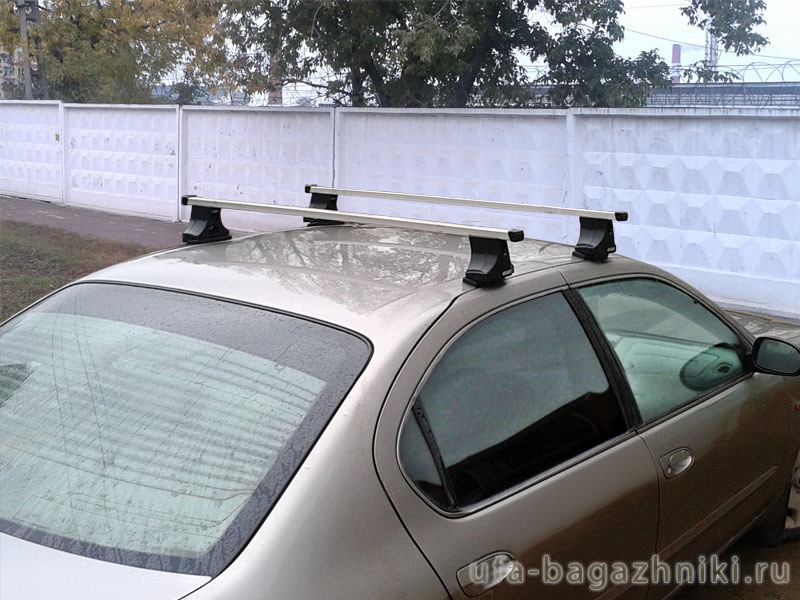 Автобагажник на крышу Nissan Maxima (A33 выпуск 2001-2005, Nissan Maxima QX, Nissan Cefiro A33), производство - Атлант (Россия), с прямоугольными дугами. Грузоподъемность до 75 кг (до 100 кг распределенной нагрузки)