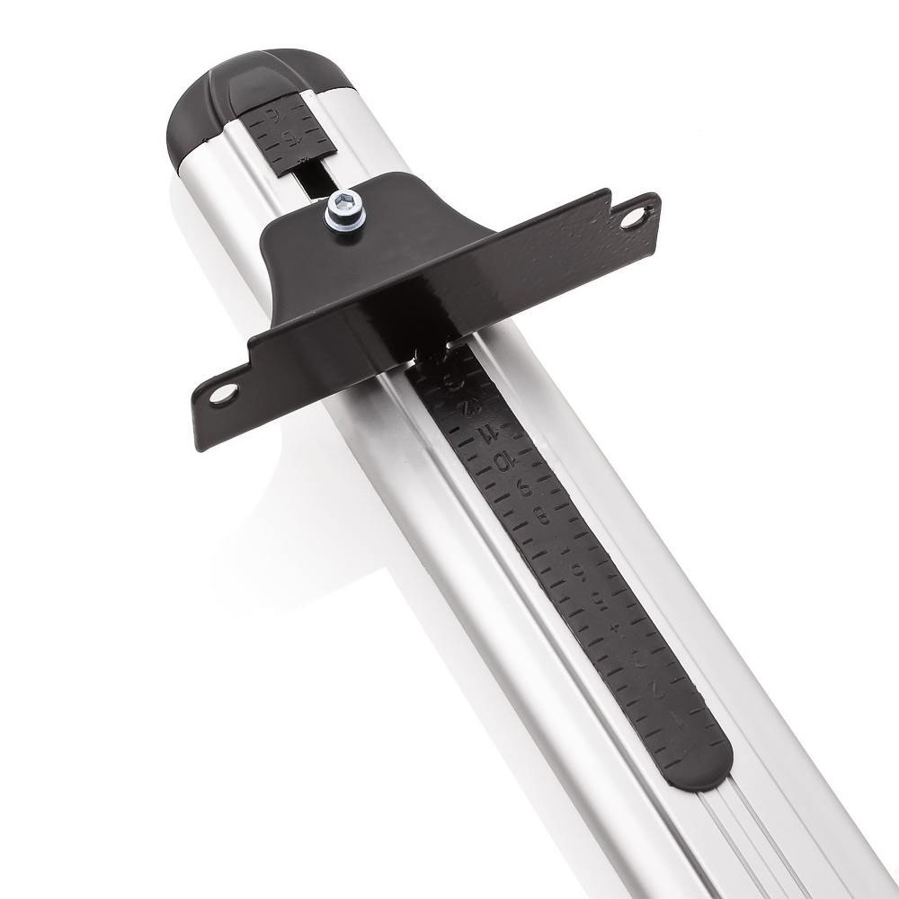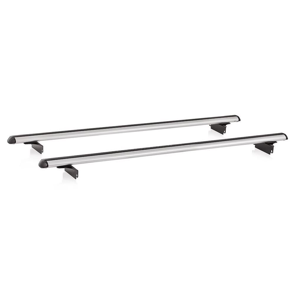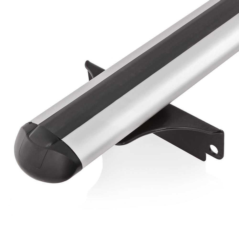 В основе багажника - 2 прочные алюминиевые дуги, выполненные из аэродинамического профиля, длиной 1100 мм. Сверху дуг проходит Т-образный паз, предназначенный для установки дополнительного оборудования - велокреплений или лыжных насадок. Фиксация дуг на рейлингах осуществляется при помощи опорных металлических планок, каждая из которых крепится 2 винтами в штатные места, расположенные с внутренней стороны рейлингов автомобиля.