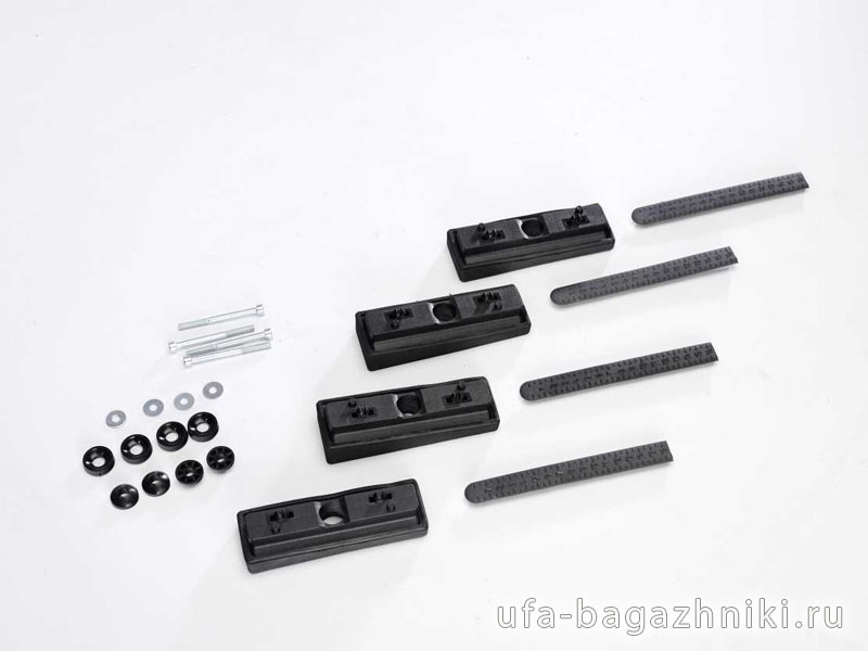 Дуги ставятся на систему опор, выполненных из прочного полимера - полиамида, имеющих крышку, которая закрывается пластиковым замком (можно сменить на металлический номерной замок). Фиксация всей конструкции на крыше осуществляется c помощью специального переходника с креплением в Т-профиль