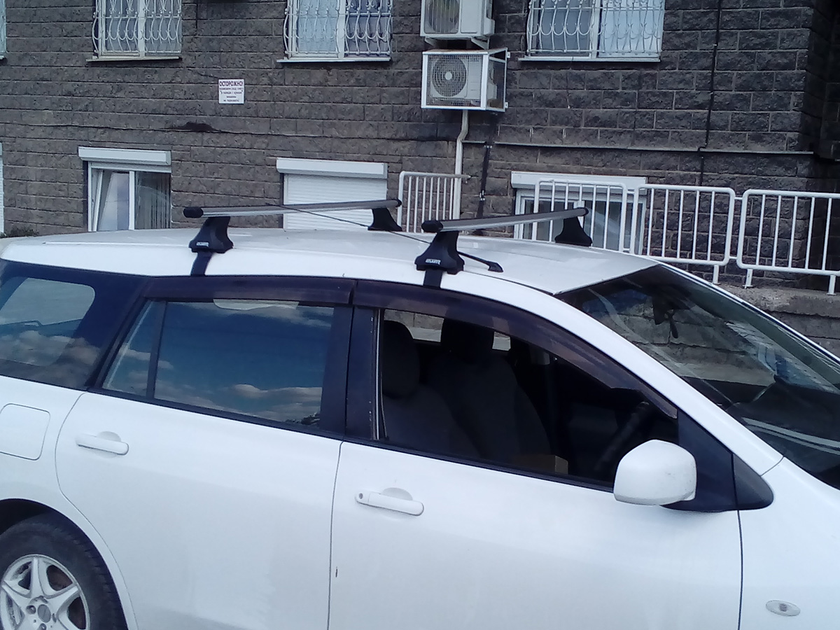 Автобагажник на крышу Nissan Wingroad Y12, Атлант (Россия), с аэродинамическими дугами Эконом и опорами типа E. Грузоподъемность до 70 кг.