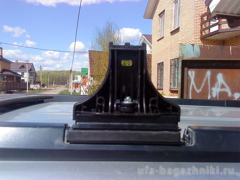 Дуги ставятся на систему опор, выполненных из прочного полимера - полиамида, имеющих крышку, которая закрывается пластиковым замком (можно сменить на металлический номерной замок). Фиксация всей конструкции на крыше осуществляется в штатные места системой винтов.