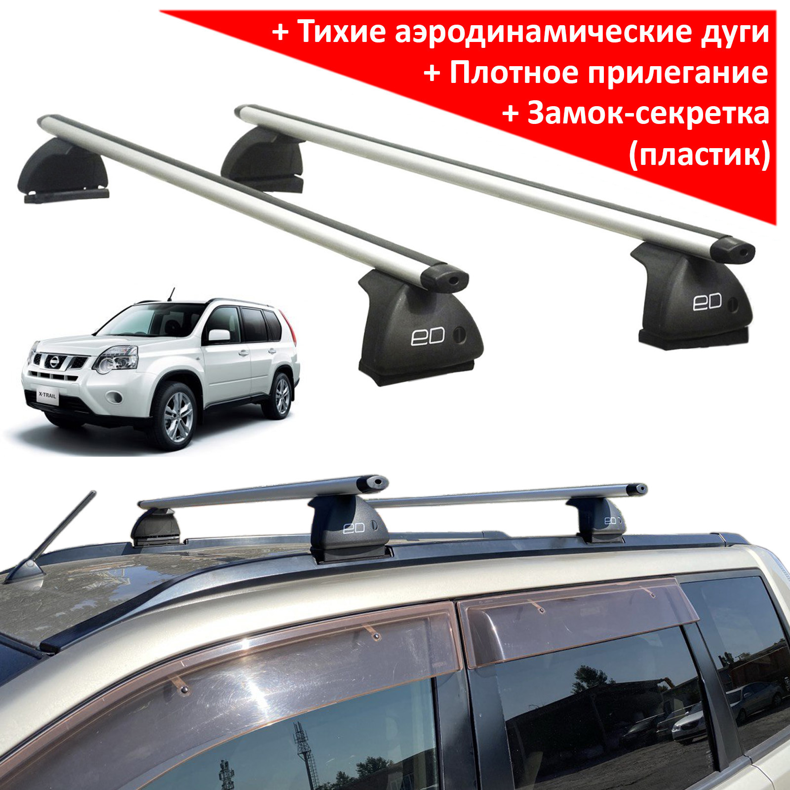 Автобагажник на крышу автомобиля Nissan X-Trail T30/T31 (без фонарей) - ЕД (Россия), аэродинамические дуги. Крепление в штатные места. Грузоподъемность до 75 кг