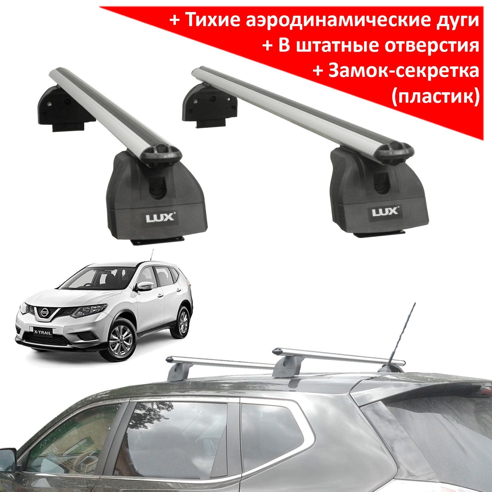 Автомобильный багажник Lux (Россия), аэродинамические дуги (Аэро-классик, 53 мм), установка в штатные места, для Nissan X-Trail T32 (5d SUV 2014-...), без рейлингов, со штатными местами.