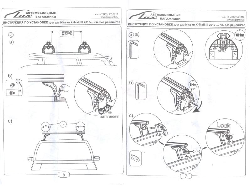 Схематичная инструкция сборки и установки багажника Lux на Nissan X-Trail T32: