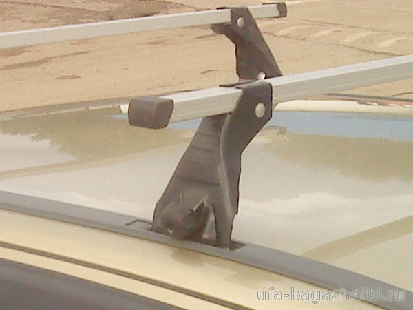 Багажник состоит из пары алюминиевых поперечин прямоугольного профиля 20x30 мм, серебристо-серого цвета, длина дуг составляет 1100 мм, а толщина стенки - 2,0 мм. На торцах каждой из дуг расположены пластиковые заглушки.