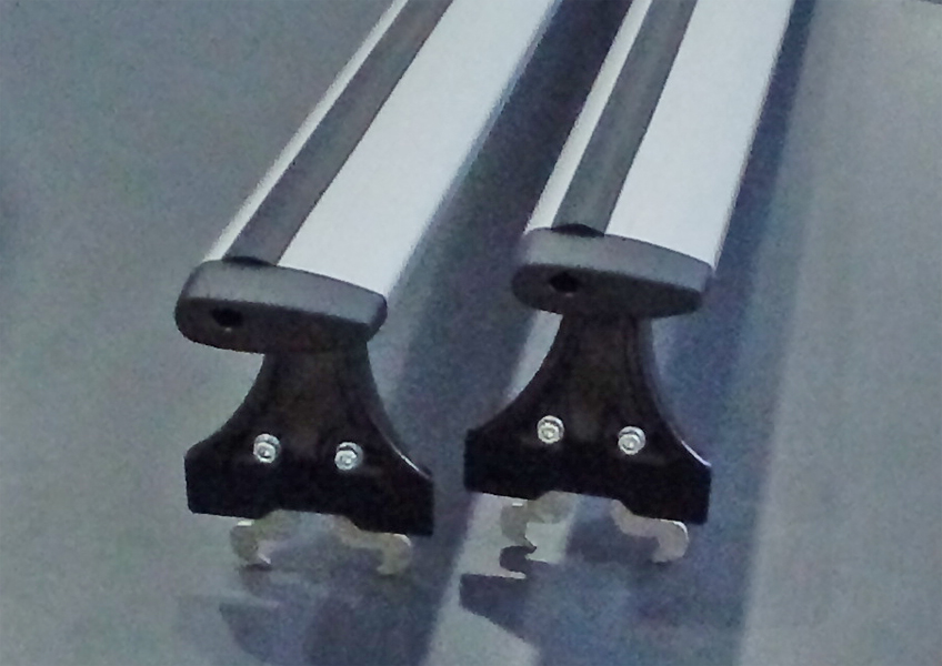 Дуги багажника изготовлены из алюминиевого крыловидного профиля, на концах имеются заглушки. Сверху дуги расположен Т-профиль, предназначенный для установки дополнительного оборудования. В свободном состоянии Т-слот закрывается резиновым уплонтнителем. Длина дуг - 1100 мм. Стойки изготовлены из стали, черного цвета. Механизм фиксации - в специальные штатные места, расположенные вдоль ребра жесткости на крыше автомобиля. Зацепы заходят под углом 90 градусов, поднятый затяжной механизм и заниженная высота стоек обеспечивает надежную фиксацию багажника без повреждения пластиковых деталей на крыше автомобиля.