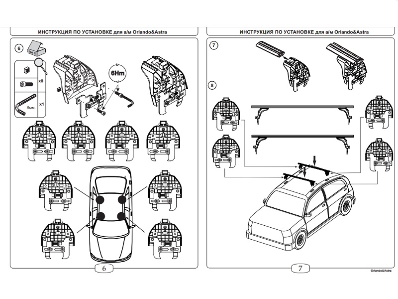 1) Комплект адаптеров (крепёжная система) для Опель Астра Джи