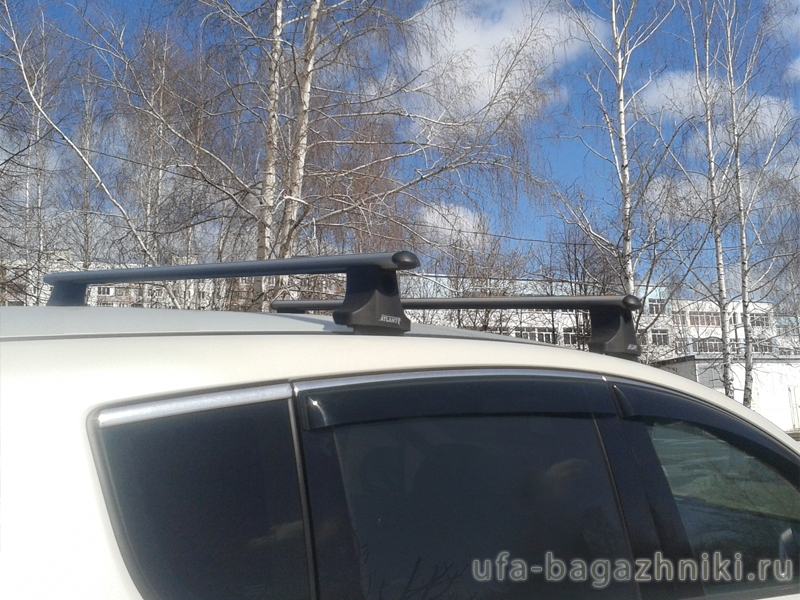 Багажник состоит из 3 основных частей: дуги, опоры и адаптеры. Тип крепления опор - C (в штатные места). Дуги длиной 1260 мм выполнены из анодированного алюминия, сверху имеют резиновую прокладку, а по краям - пластиковые заглушки. Опоры производятся из полиамида и имеют внутренний секретный замок для предотвращения несанкционированного съёма с крыши авто. Установка производится в штатные места при помощи системы адаптеров, схема аналогична креплению багажника на Peugeot 308: используется втулка, расположенная под лючками, имеющимися на крыше авто. Обращаем внимание также на то, что багажная система не касается непосредственно крыши машины, поскольку включает систему металлических опорных уголков, входящих напрямую в штатное место.