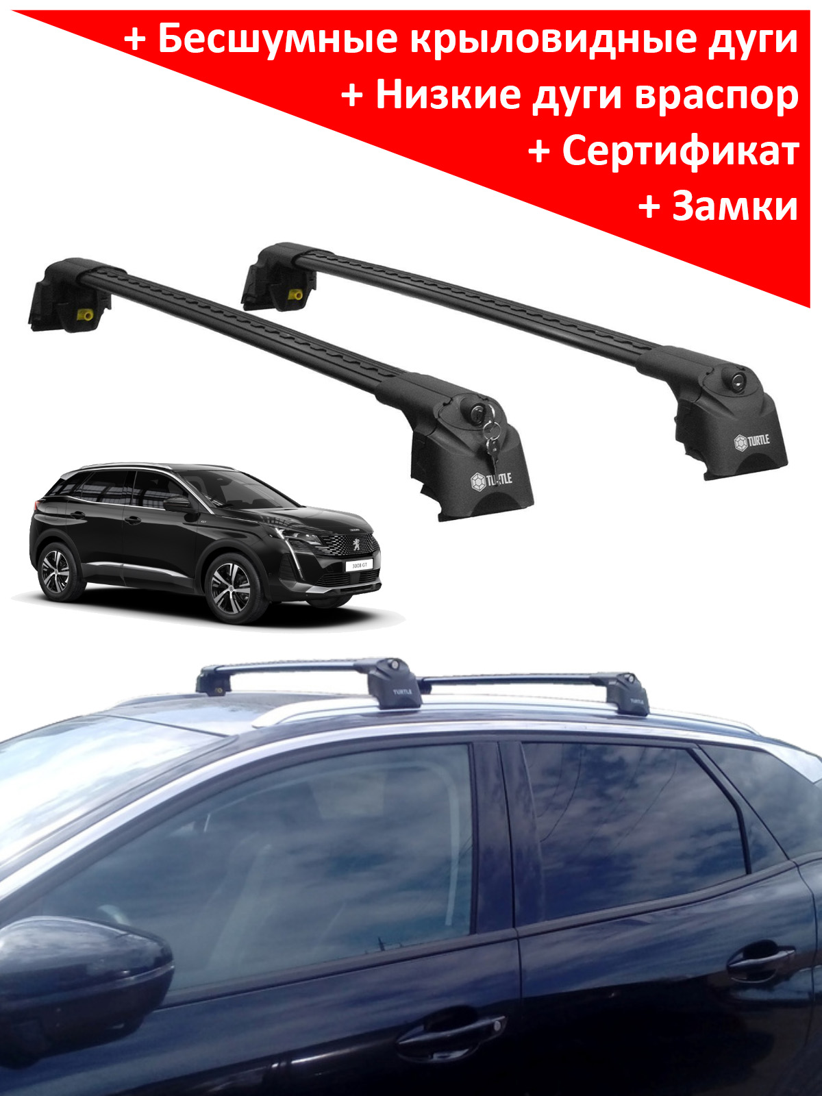 Багажник на крышу Peugeot 3008 2016-..., Turtle Air 2, аэродинамические дуги на интегрированные рейлинги (черный цвет)