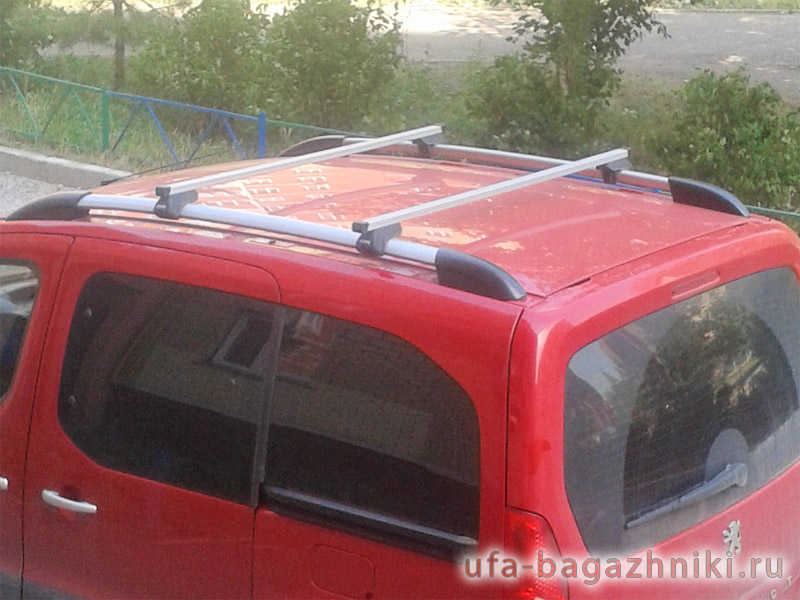 Багажник на крышу Peugeot Partner 2008-..., Атлант, прямоугольные дуги на рейлинги