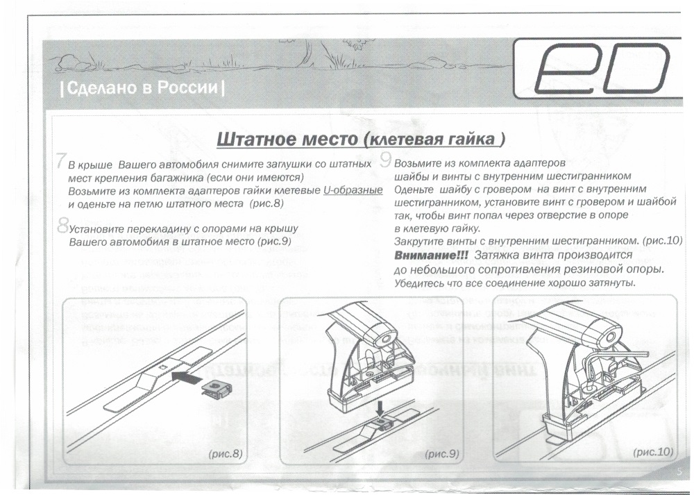 Багажная система ЕД - это простая, но надежная конструкция, состоящая из трех основных частей: дуг, опор и адаптеров. Профиль дуги - крыловидный (ширина 80 мм), материал - анодированный алюминий, цвет - серебристый, длина 1350 мм. Поверх дуги проходит Т-образный профиль, предназначение которого - легкая и быстрая установка дополнительного оборудования - велокреплений, лыжный насадок. В свободном состоянии Т-профиль закрывается черным резиновым уплотнителем. На концах дуг располагается пара заглушек. Дуги опираются на 4 стойки, производимые из прочного пластика. Крышки плотно закрываются на пластиковый замок (Дополнительная опция - металлические замки). Фиксация на крыше производится с помощью системы адаптеров в штатные места.