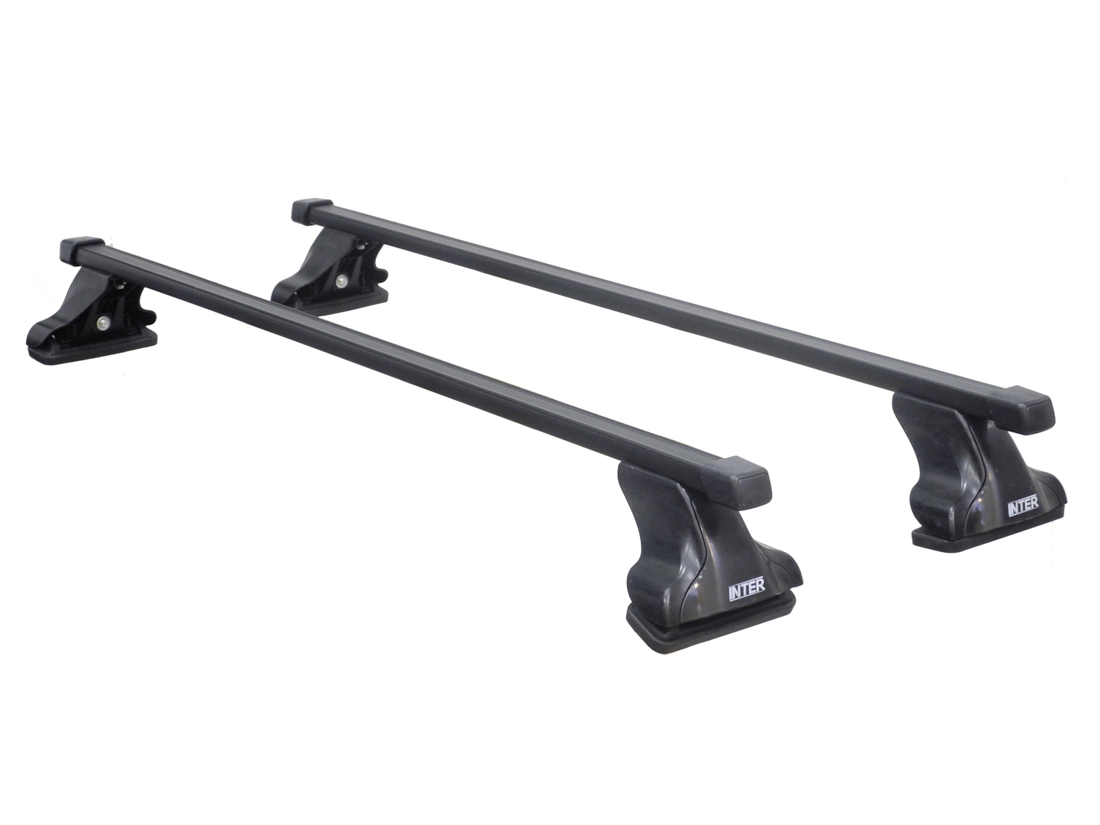Багажная система INTER состоит из двух основных частей: дуг и опор с адаптерами. Дуги изготовлены из стального прямоугольного профиля 20х30 мм, их длина - 1200 мм, поверх дуги имеется рельефная пластиковая оболочка черного цвета. Концы дуг закрываются парой заглушек. Дуги опираются на 4 опоры, производимые из прочного пластика. В комплекте опор все крепления уже собраны с опорными резиновыми площадками, все адаптеры промаркированы для удобства установки. Фиксация на крыше производится с помощью системы адаптеров за дверной проём с использованием штатного отверстия в кузове автомобиля.