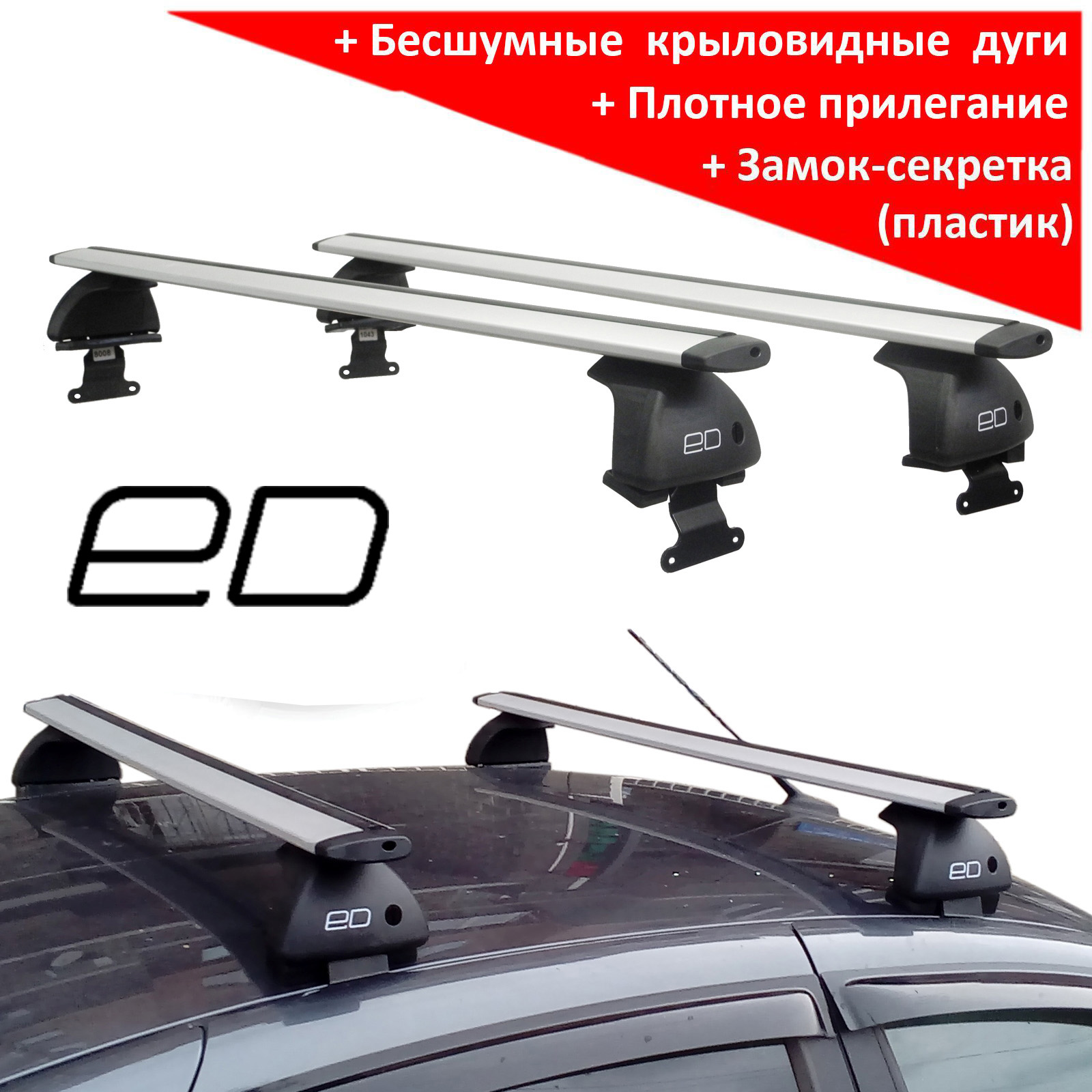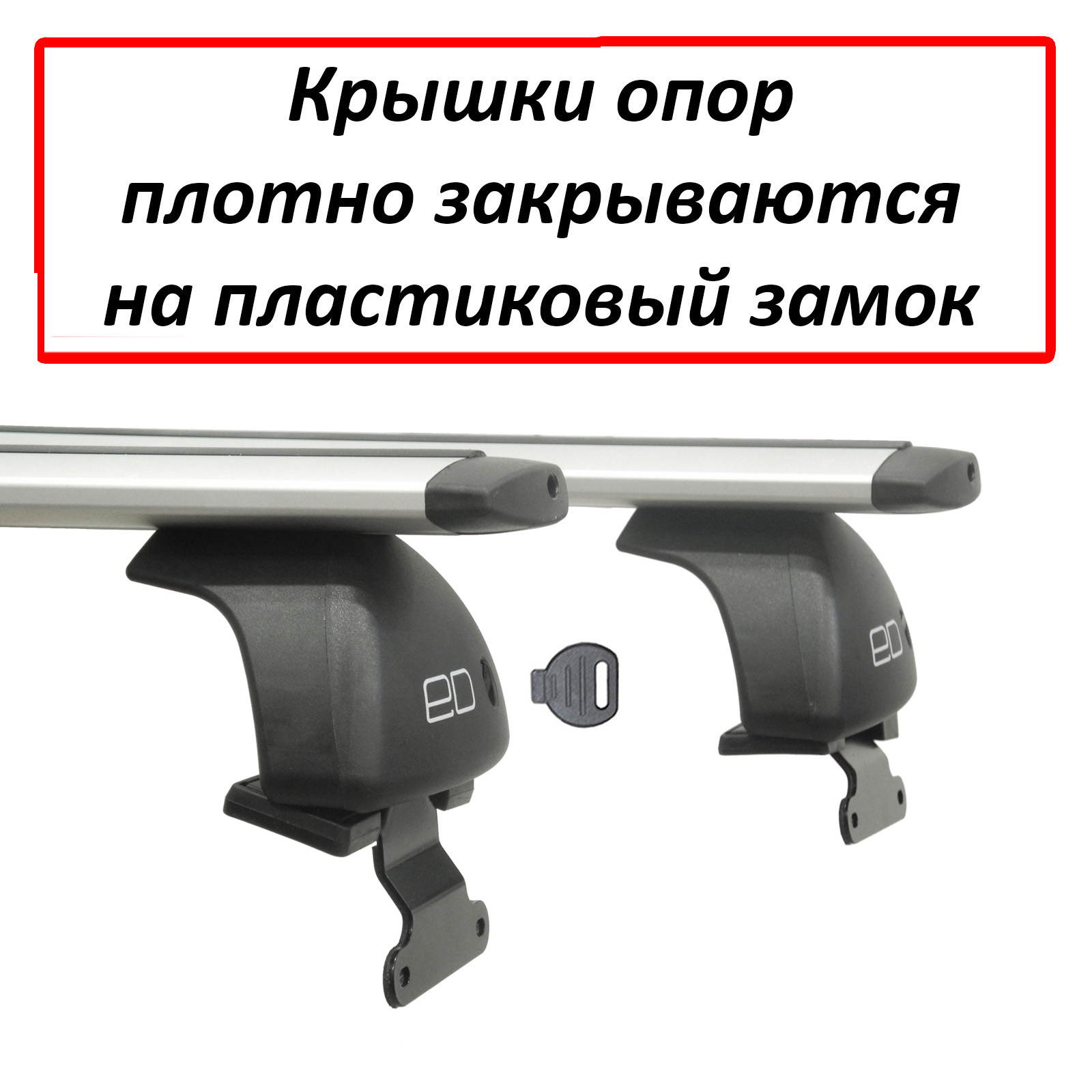 Багажная система ЕД - это простая, но надежная конструкция, состоящая из трех основных частей: дуг, опор и адаптеров. Профиль дуги - крыловидный (ширина 80 мм), материал - анодированный алюминий, цвет - серебристый, длина 1100 мм. Поверх дуги проходит Т-образный профиль, предназначение которого - легкая и быстрая установка дополнительного оборудования - велокреплений, лыжный насадок. В свободном состоянии Т-профиль закрывается черным резиновым уплотнителем. На концах дуг располагается пара заглушек. Дуги опираются на 4 стойки, производимые из прочного пластика. Крышки плотно закрываются на пластиковый замок (Дополнительная опция - металлические замки). Фиксация на крыше производится с помощью системы адаптеров за дверной проём (с креплением в штатные отверстия под резиновым уплотнителем).
