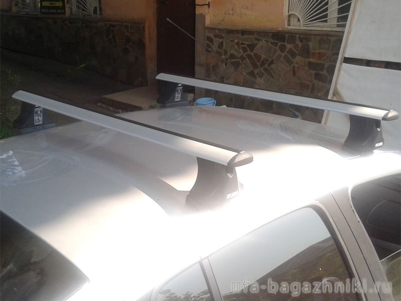 Багажник для Renault Symbol с крыловидными аэродугами. Производство - Атлант (Россия). Грузоподъемность до 75 кг (до 120 кг распределенной нагрузки)