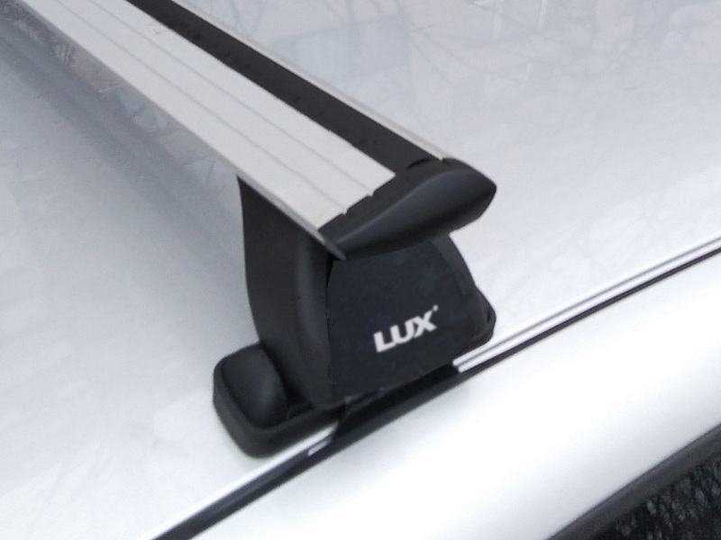 Багажная система Lux - это простая, но надежная конструкция, состоящая из трех основных частей: дуг, опор и адаптеров. Профиль дуги - аэродинамический, крыловидный, материал - анодированный алюминий, цвет - серебристый, длина 1100 мм, ширина - 82 мм. Поверх дуги проходит Т-образный профиль, предназначение которого - легкая и быстрая установка дополнительного оборудования - велокреплений, лыжный насадок. В свободном состоянии Т-профиль закрывается черным резиновым уплотнителем. На концах дуг располагается пара оригинальных заглушек, имеющих отодвигающийся лючок для доступа к Т-профилю. Дуги опираются на 4 стойки, производимые из прочного пластика. Фиксация на крыше производится с помощью системы адаптеров за дверной проём с использованием штатных мест.