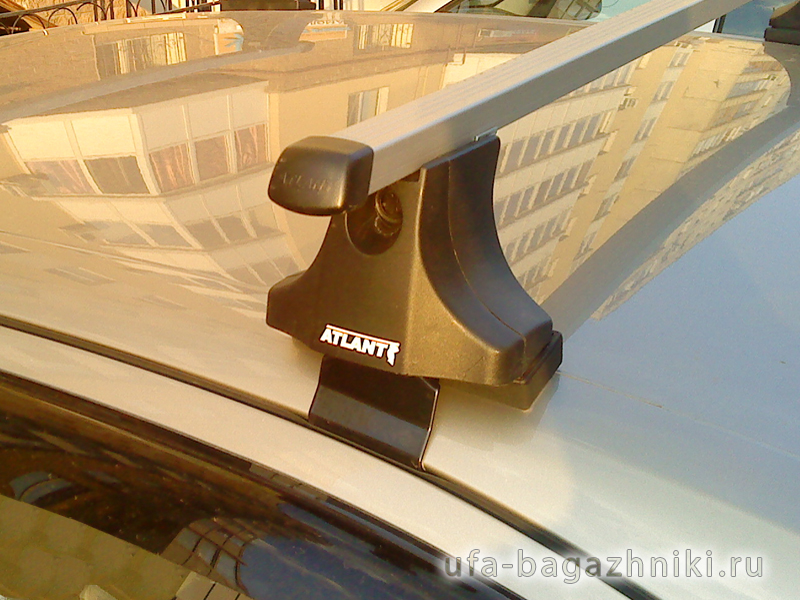 В основе багажника - две поперечные дуги, их параметры: материал - алюминий, профиль - 22х32 мм, длина - 1260 мм, толщина стенки - 2,5 мм, цвет - серебристо-серый, на концах - пластиковые заглушки. Дуги устанавливаются на 4 опоры, производимые из прочного композитного материала - полиамида. Внутри каждой опоры располагается секретный замок, закрываемый внешней крышкой с логотипом "Atlant". Крепление на крыше производится с помощью адаптеров за дверной проем, при этом используются и штатные отверстия в кузове машины, расположенный под резиновой прокладкой вдоль дверей.