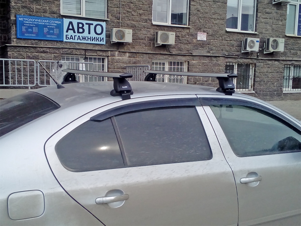 Автобагажник на крышу автомобиля Skoda Octavia A5 (2004-2013) - Lux (Россия), крыловидные дуги (аэро-трэвэл 82 мм). Грузоподъемность до 75 кг