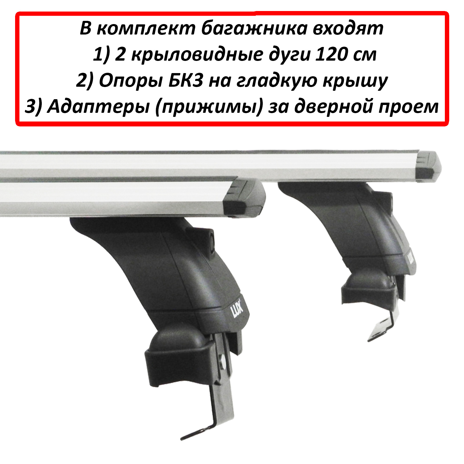 Багажная система Lux - это простая, но надежная конструкция, состоящая из трех основных частей: дуг, опор и адаптеров. Профиль дуги - аэродинамический, крыловидный, материал - анодированный алюминий, цвет - серебристый, длина 1200 мм, ширина - 82 мм. Поверх дуги проходит Т-образный профиль, предназначение которого - легкая и быстрая установка дополнительного оборудования - велокреплений, лыжный насадок. В свободном состоянии Т-профиль закрывается черным резиновым уплотнителем. На концах дуг располагается пара оригинальных заглушек, имеющих отодвигающийся лючок для доступа к Т-профилю. Дуги опираются на 4 стойки, производимые из прочного пластика. Опоры могут быть снабжены металлическими замками Lux (дополнительная опция). Фиксация на крыше производится с помощью системы адаптеров за дверной проём.