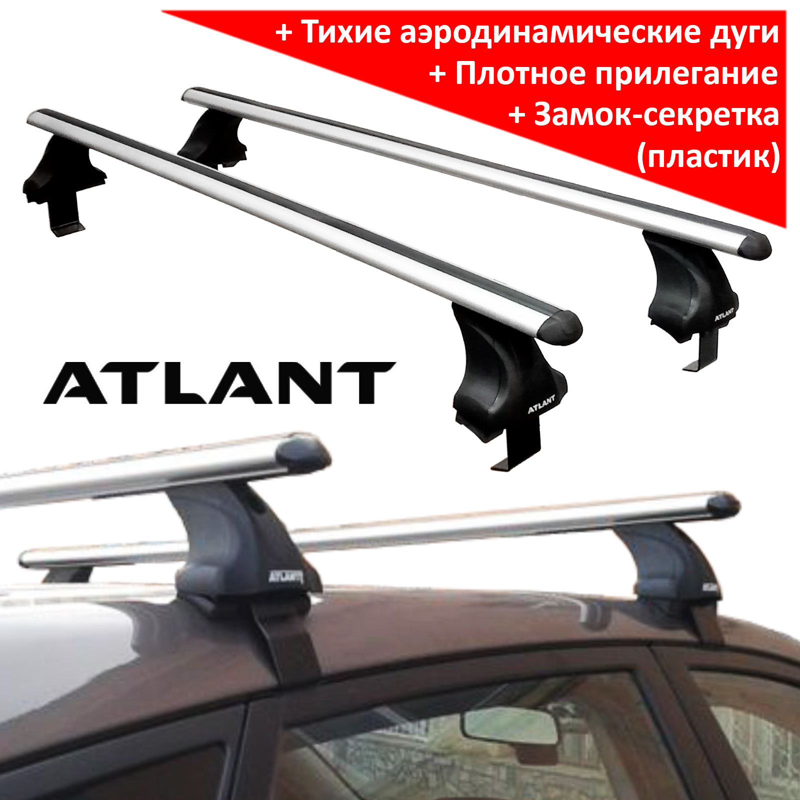 Багажник на крышу SsangYong Actyon / SsangYong New Actyon, Атлант, аэродинамические дуги