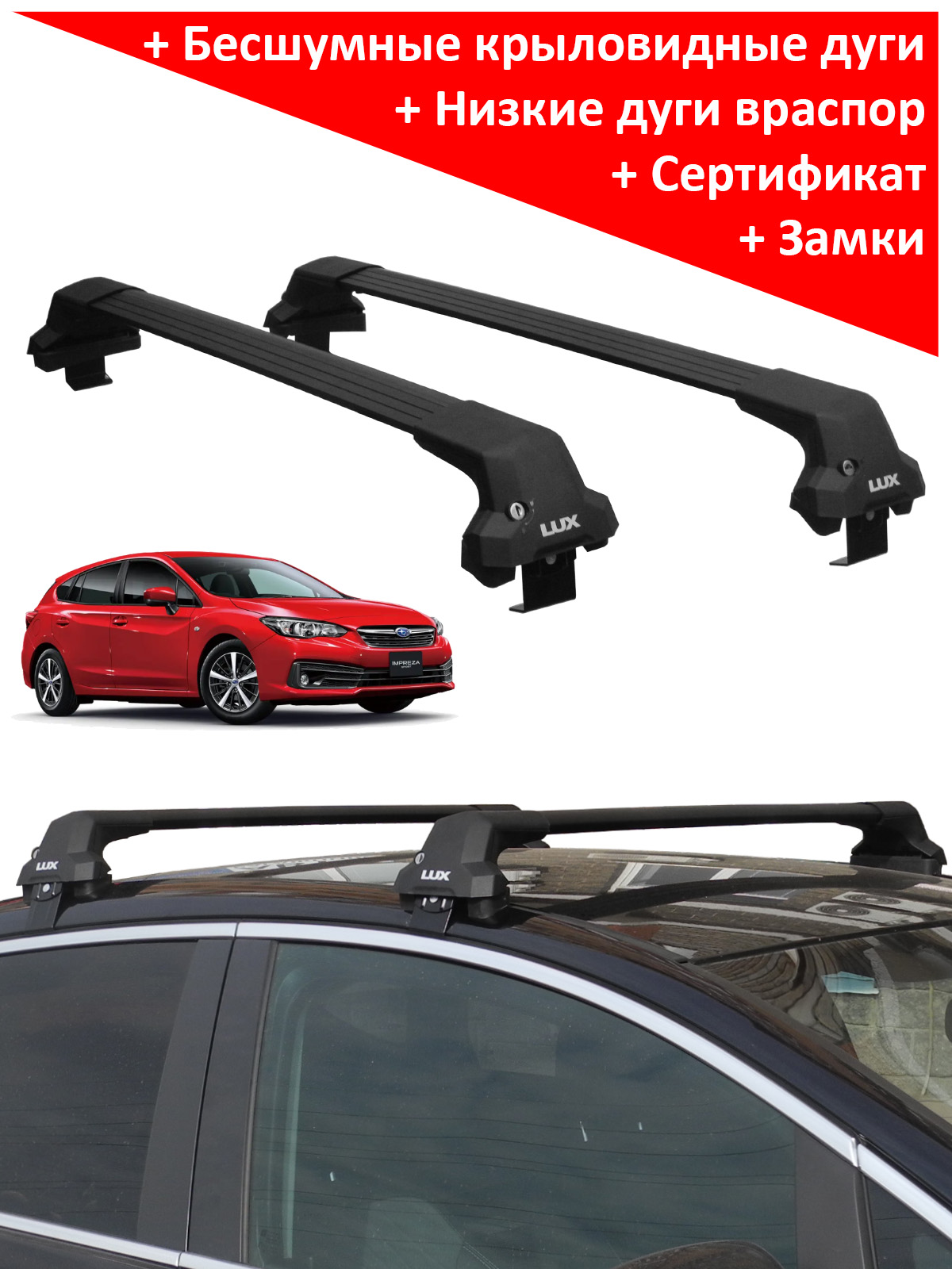 Багажник на крышу Subaru Impreza V (хэтчбек, 2016-2023), Lux City (без выступов), с замком, черные крыловидные дуги