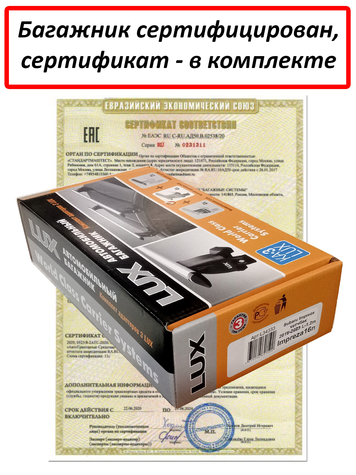 Представляем багажную систему Lux City на крышу Subaru Impreza V (хэтчбек, 2016-2023) от российского производителя - марки "Lux". Цвет дуг - черный.